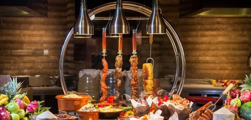 自助晚餐有好多令人驚艷嘅菜式,例如即席解體嘅原條黃鰭吞拿魚、由巴西式燒烤爐烤製嘅安格斯西冷牛扒、紐西蘭羊架、澳洲豬肋骨同惹味大蝦等。