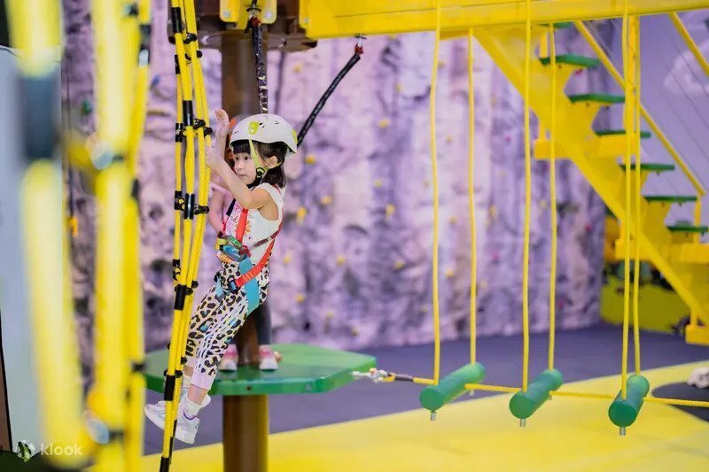 酒店仲設有兒童樂園「歷險Q立方」,提供各種新奇好玩嘅兒童遊戲項目,包括攀爬設施、滑梯、繩橋、繩網同電腦遊戲等。